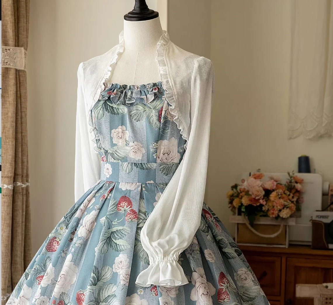 The classic silhouette reminiscent of an aristocratic young lady and the botanical prints are elegant.